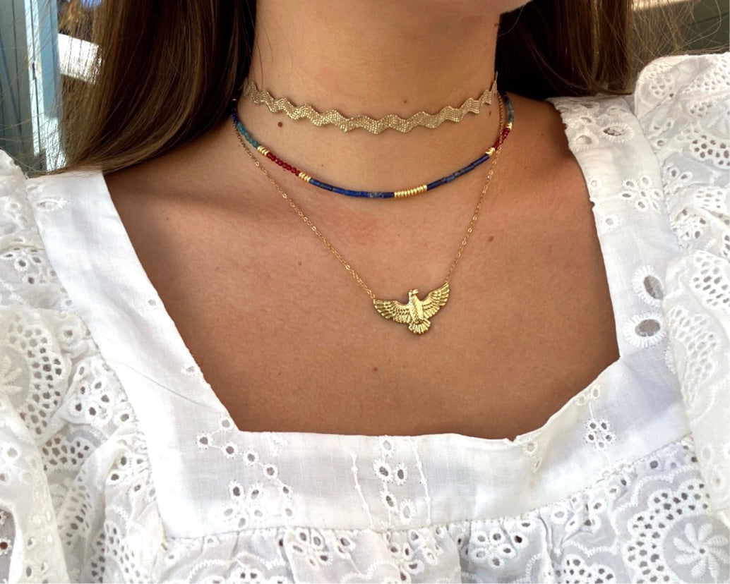 Collar acero con piedras semipreciosas en tonos azules y dorados